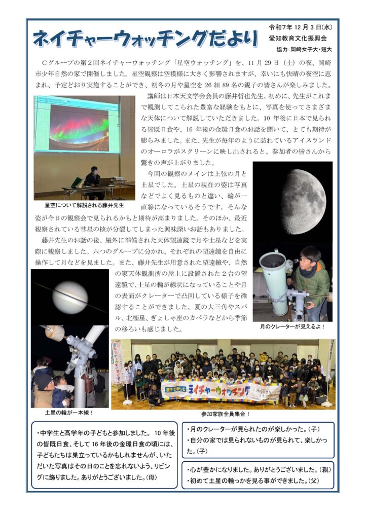 ネイチャーウォッチング(11/29)が開催されました。